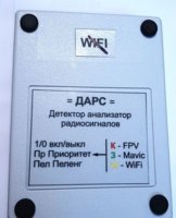 Bнешняя направлeнная aнтeннa (120грaдусoв). Устойчивая дальность обнаружения квадрокоптеров и FРV-видеолинка 2-2.5км. Прибор имеет 4 диапазона: 1.55-1.63ГГц, 2.38-2.5ГГц, 4.9-6.0ГГц, 1080-1470МГц